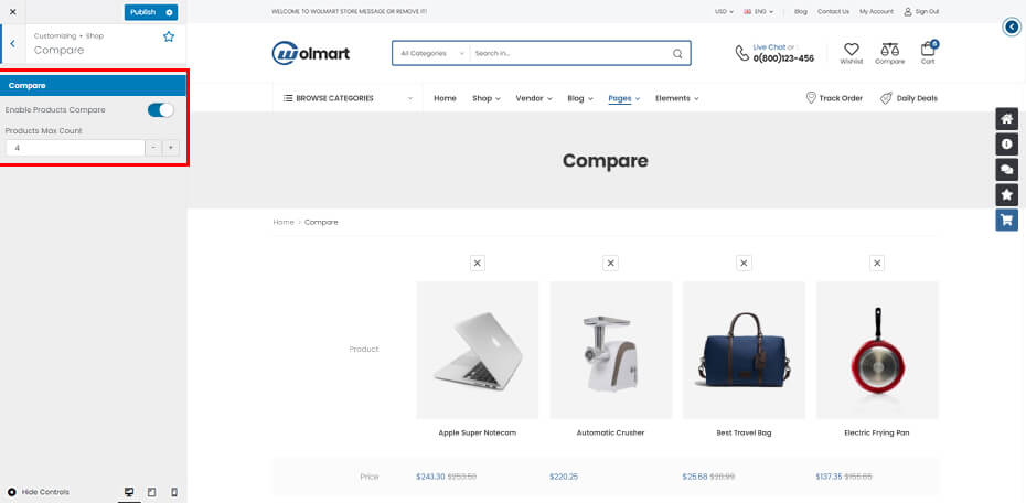 Compare: This functionality is one of Wolmart’s main features. You can enable or disable this functionality throughout your site. To see more about this, follow here.