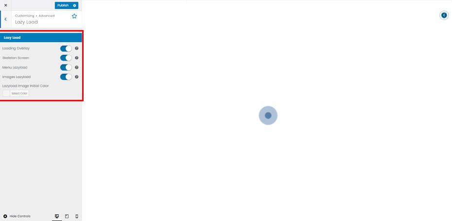Lazy Load: Loading overlay, skeleton screen, menu lazyload, image lazyload options.