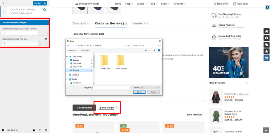 Product Reviews: Set attachment image options of product reviews.